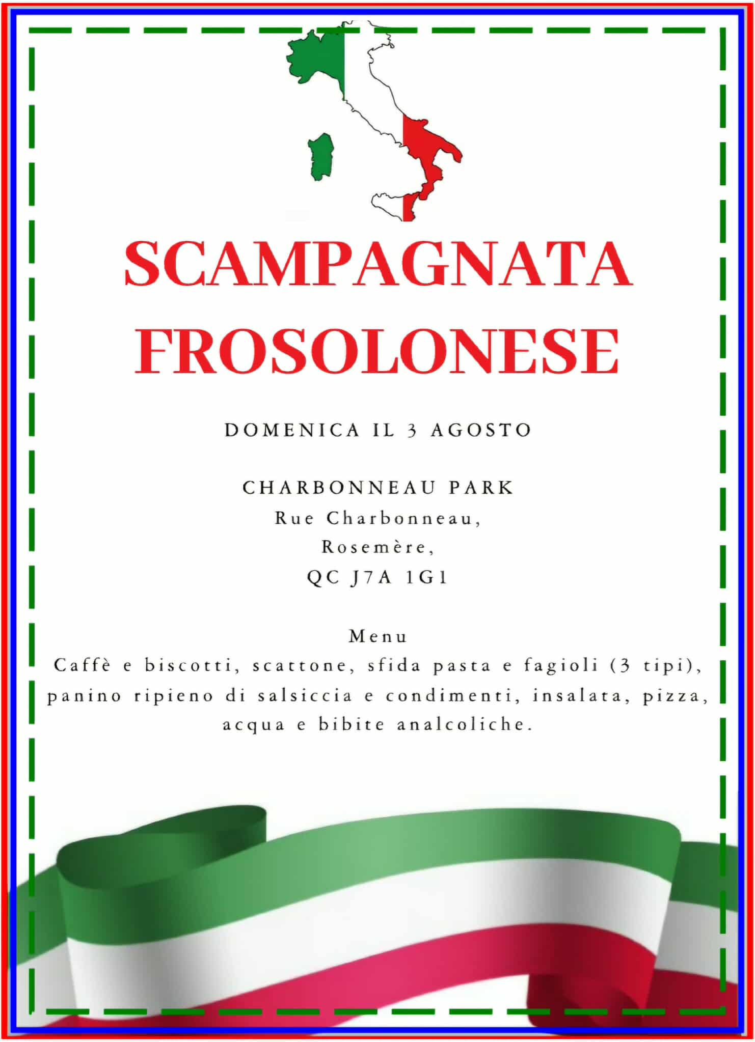 The President, M Francesco Maselli and his counsel members, invite all members, family and friends to the annual "Scampagnata Frosolonese"